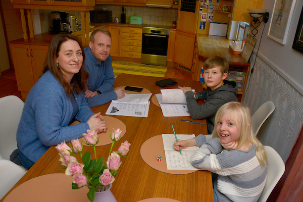 INTERNETT-PAUSE: –Altibox Hjem-appen forenkler hverdagen, fordi når vi setter Internett på pause, så blir lekser gjort, forteller mor Heidi. Her sammen med mannen Kjell og barna Oliver (11) og Sofie (9).
